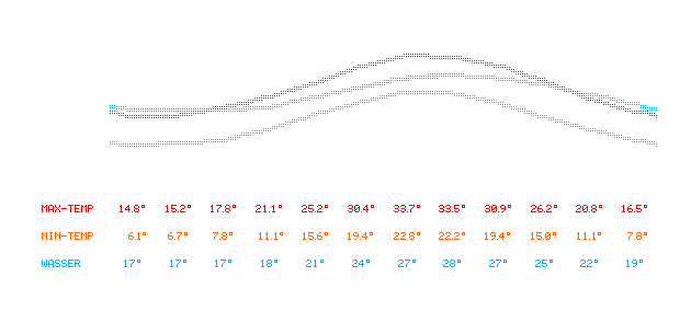 The above temperatures are average values from previous years. We kindly request that you take into consideration that this may vary.